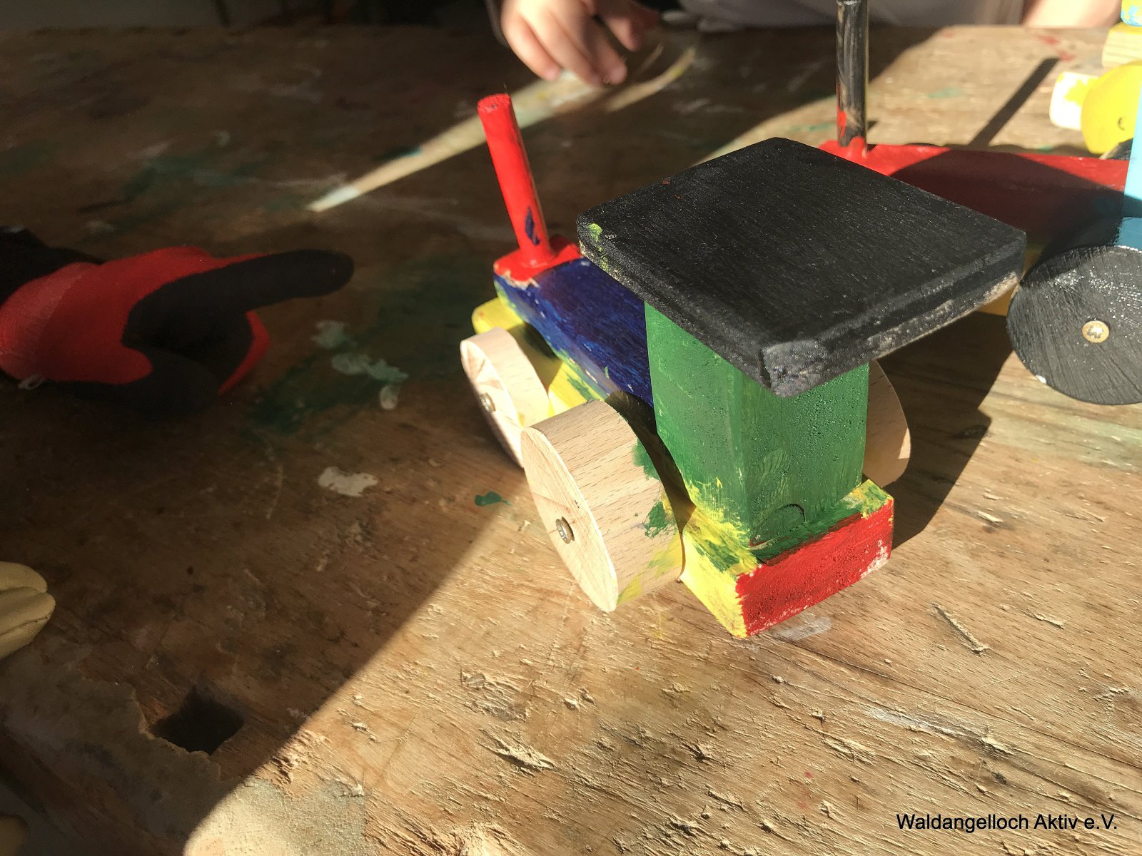 gebaut aus Holzresten / Hausaufgabe: Bunt anmalen!